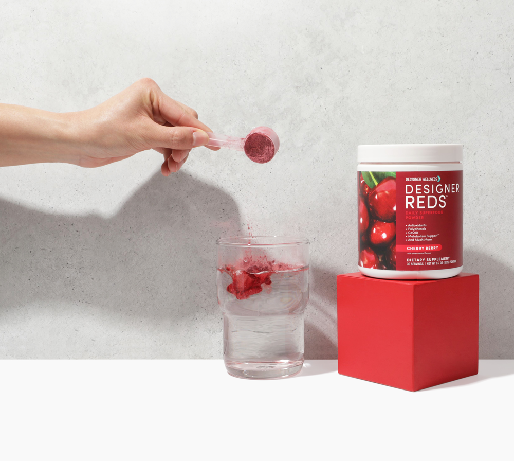 Designer Reds Powder comes in Natural Cherry Berry flavor.